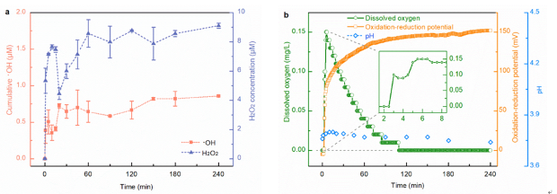 图2 石英–水界面H2O2和O2产生的生成动力学过程