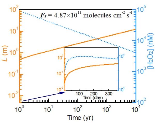图3 太古宙局部环境中随时间积累的H2O2浓度