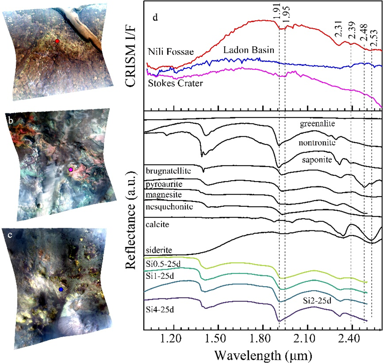 图3. 火星疑似水滑石出露区域的CRISM近红外数据解析。