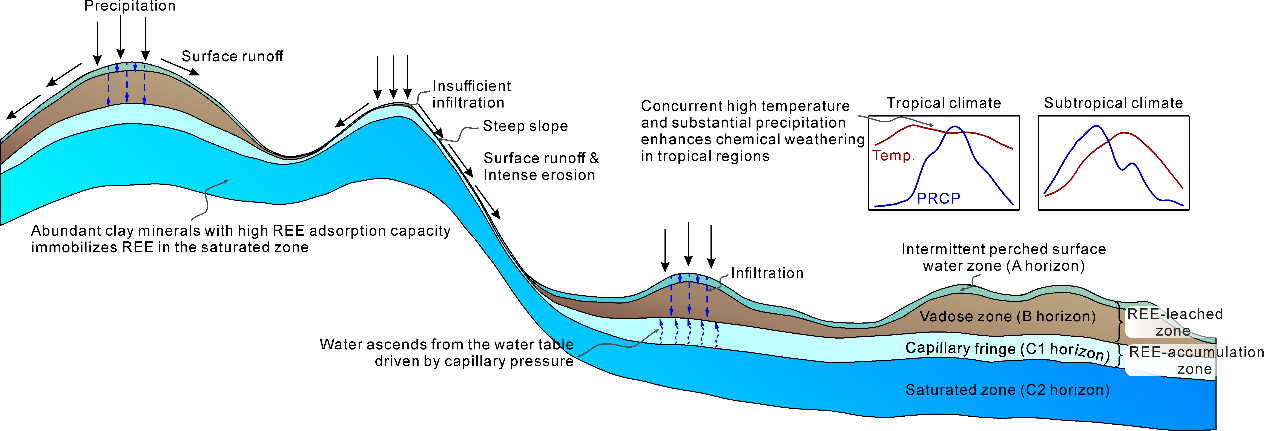 上述发现揭示了热带气候条件下离子吸附型稀土矿床的独特成矿特征,同时也为热带地区离子吸附型稀土矿床的勘探提供了高效、可行的研究方法。