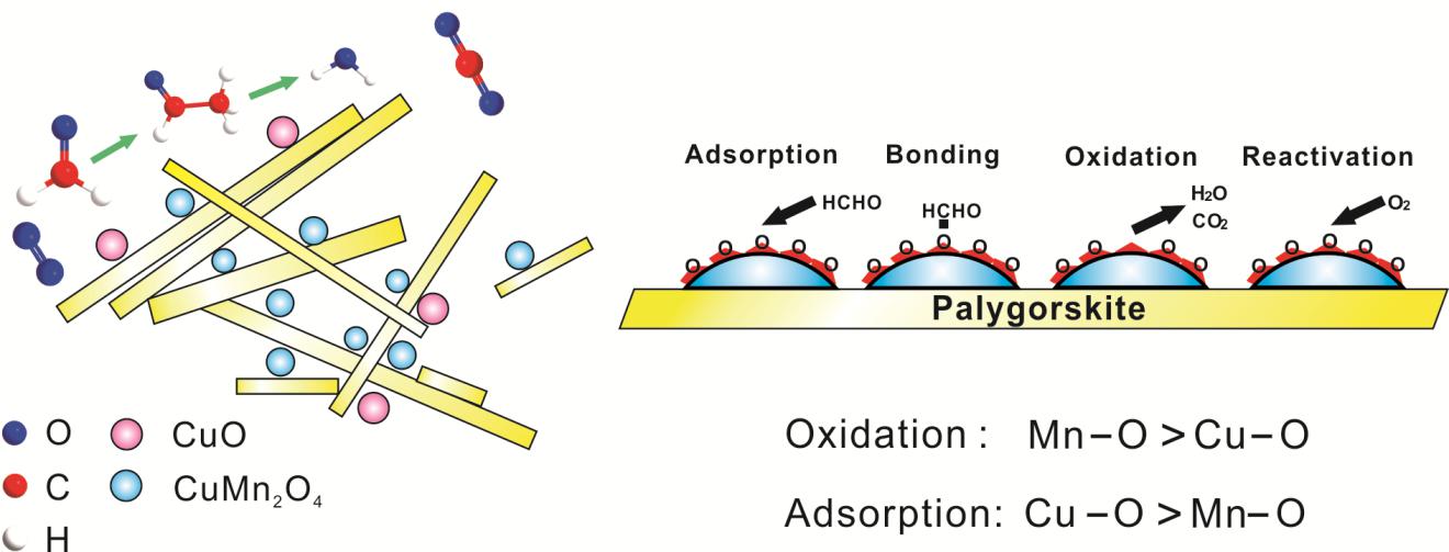 坡缕石负载铜锰复合氧化物热催化氧化甲醛机制图