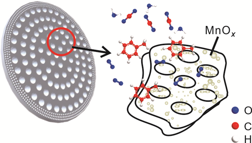 广州地球化学研究所刘鹏博士研究生在该所梁晓亮副研究员和何宏平研究员的指导下,以硅藻蛋白石的大孔结构和表面荷电性质为出发点,通过沉积-沉淀法负载锰氧化物在壳体和孔壁上,获得硅藻蛋白石负载型锰氧化物MnOx/Dt,将制备获得的复合材料用于热催化氧化甲苯。