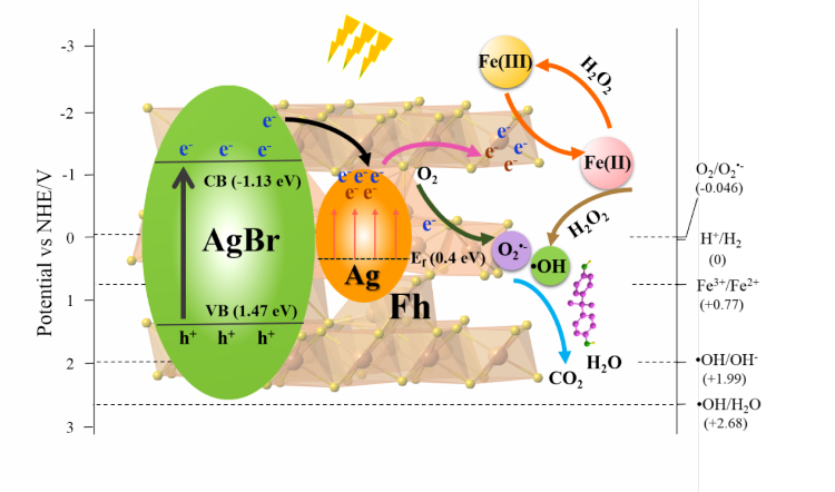 图1. Ag/AgBr/Fh体系中可能的光芬顿催化机理图