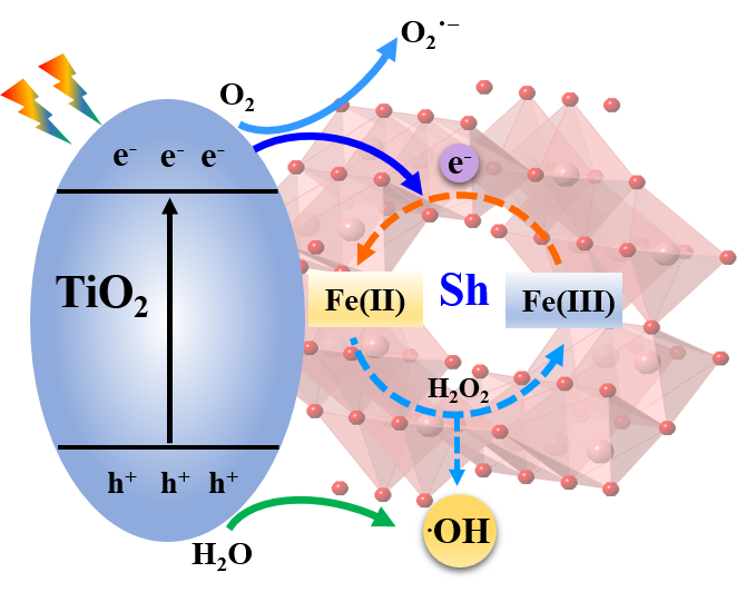 图1. TiO2/Sh光助芬顿体系中的可能机理图