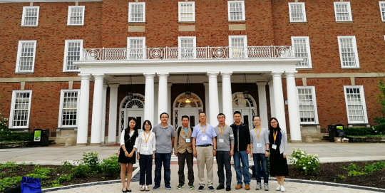 2018年6月11日-14日,何宏平研究员等一行七人应邀参加第55届国际黏土学会年会(伊利诺伊大学香槟厄巴纳分校,美国)。其中,何宏平研究员在“Structures and Reactivity of Clays and Nanoparticles in Soils and Water”(土壤和水体中,黏土和相关纳米颗粒的结构特征和反应性)分会场进行题目为“Conversion of 1:1 Clay Minerals to Smectite under Hydrothermal Conditions: Implication for Solid State Transformation”的精彩口头报告。朱润良研究员通过举例有机黏土对疏水性有机污染物处理过程(口头报告:Effect of Surfactant Packing Density on The Sorption of Hydrophobic Organic Contaminants On Organiclays),展示红外光谱学在黏土矿物领域的应用。另有副研究员陶奇(展报:Hydrothermal Reactivity of Mixed Metal Oxides with Silicate Anions under Alkaline Conditions)、高级工程师马灵涯(展报:Adsorption of Phenol, Phosphate and Cd(II) by Inorganic-organic montmorillonites: A Comparative Study of Single and Multiple Solute)、博士生刘晶(展报:Co-Adsorption of Phosphate and Cd(II) on Iron (Oxyhy)oxides: A Comparative study on Ferrihydrite, Goethite, and Hematite)、博士生李瑛(口头报告:Heterogeneous Reduction of 2-Chloronitrobenzene Performance, Characterization and Mechanism)和博士生吉世超(口头报告:The Solid-state Transformation from Brucite to Clay Minerals)在大会上展示了相关研究工作内容。