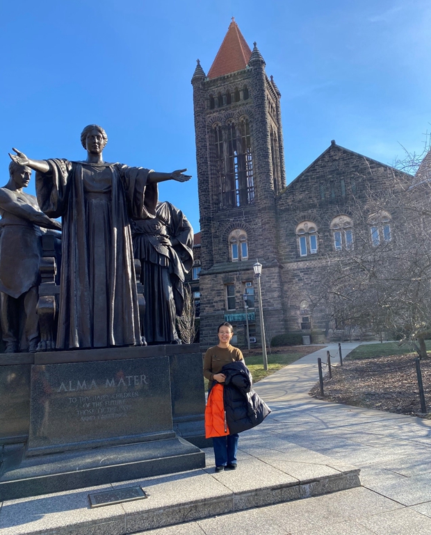 2020年1月,应美国伊利诺伊大学厄巴纳-香槟分校Yuji Arai教授邀请,博士研究生杨美君前往伊利诺伊大学厄巴纳-香槟分校交流学习一年。此次出访的主要目的是学习该课题组对同步辐射技术在水-矿物界面的复杂化学过程等领域中的应用,并利用该技术探究稀土元素的地球化学行为。