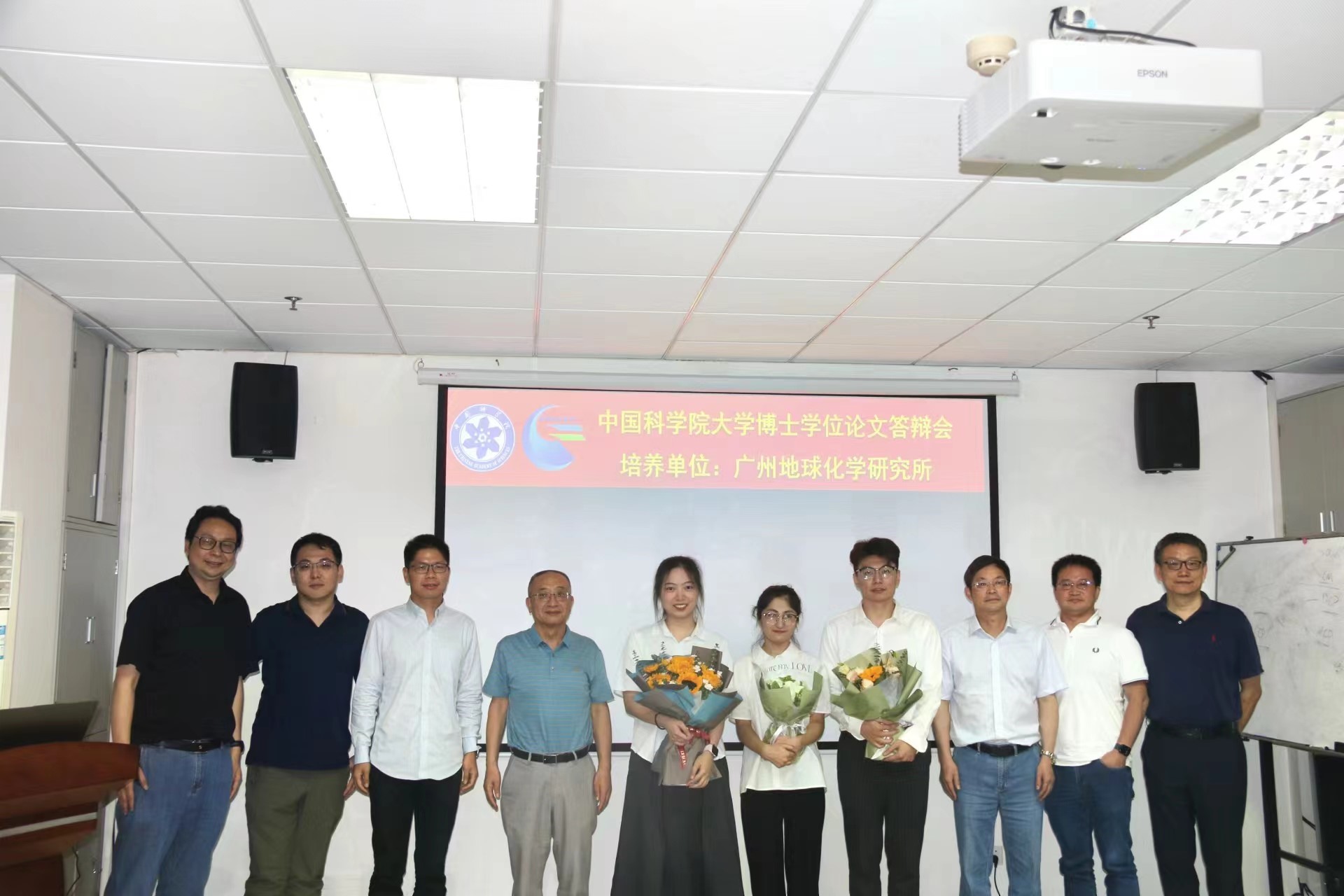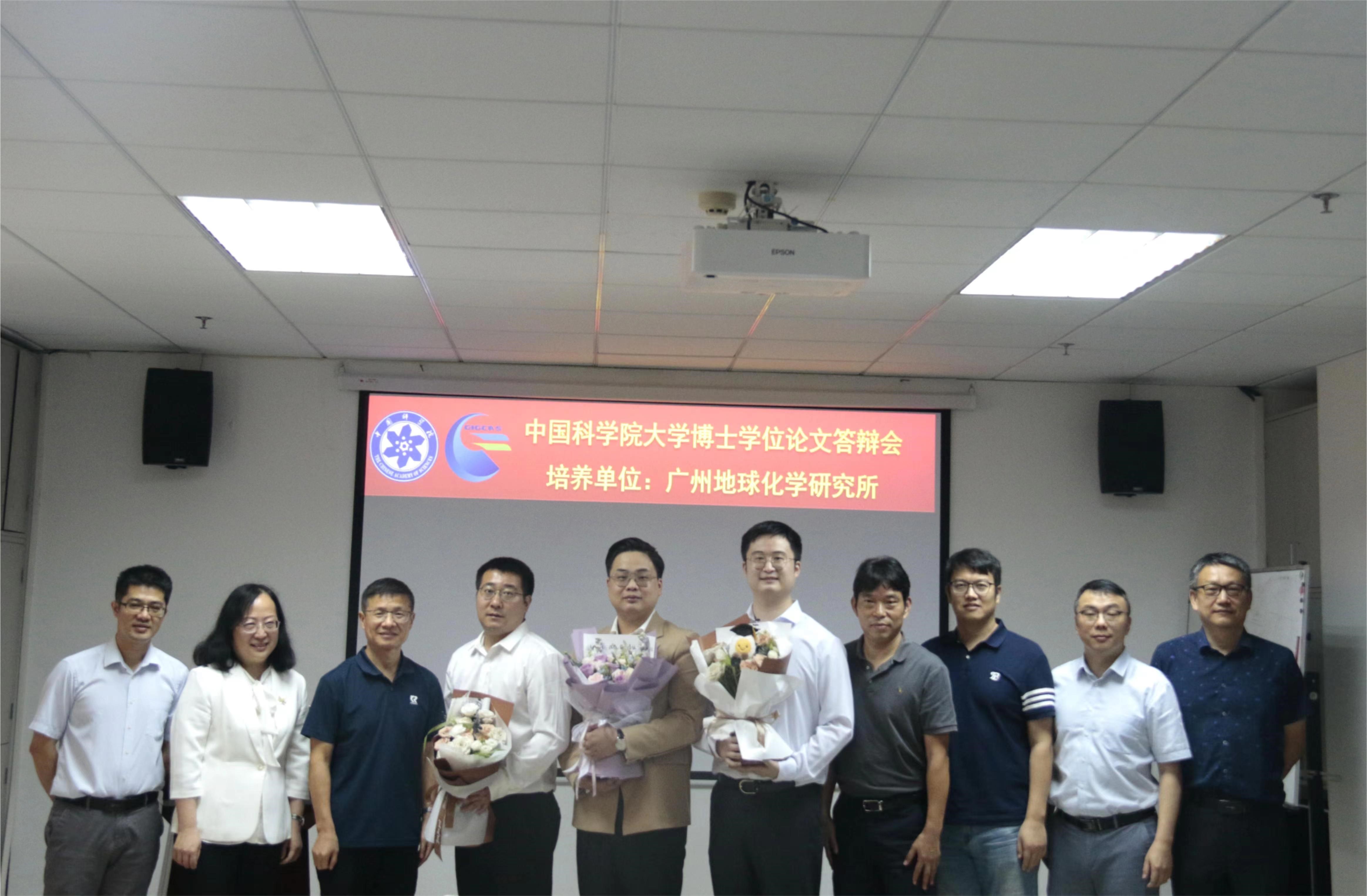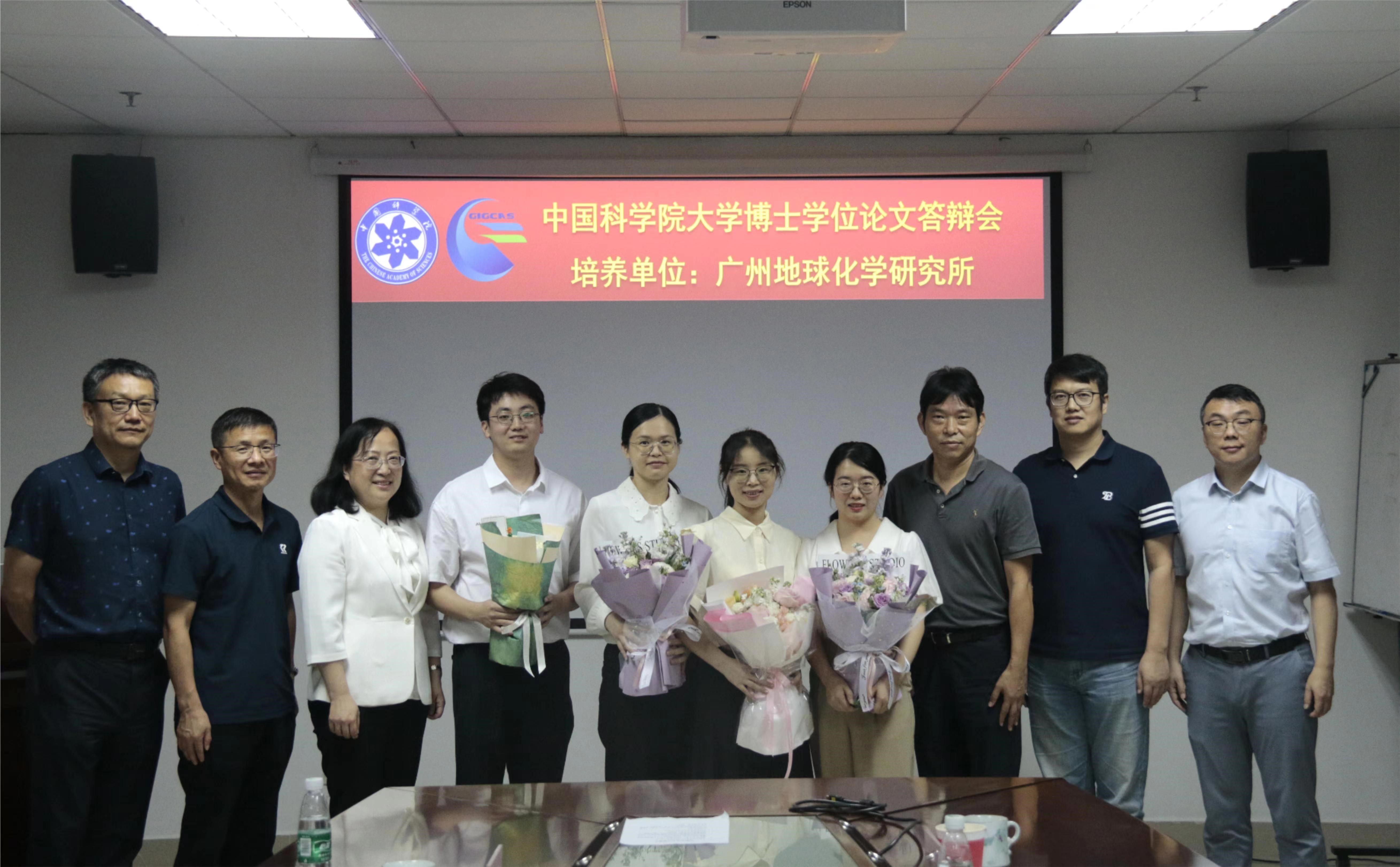 本次答辩会的答辩人为博士研究生杨奕煊(指导老师:朱润良)、韩斌(指导老师:朱润良)、邓方鑫(指导老师:朱润良)、何诗雅(指导老师:朱润良)、韦寿淑(指导老师:朱建喜)、杜静(指导老师:朱润良)、邢介奇(指导老师:朱建喜),硕士研究生黄海铭(指导老师:朱润良)、陈可妍(指导老师:何宏平)、古丽妮尕尔(指导老师:朱建喜)、李宇航(指导老师:陈锰),毕业论文题目分别为《地表典型矿物纳米颗粒对 Mn(II)氧化和锰氧化物结晶生长的诱导作用及机制》、《黏土矿物对水铁矿相转化及共存金属离子赋存状态的影响》、《基于含铁矿物-水热泥炭的异相芬顿催化材料的构建及性能研究》、《黏土矿物制备硅基多孔材料及其去除 VOCs 的性能研究》、《改性蒙脱石制备硅基纳米复合材料及其储锂性能研究》、《滑石制备硅基纳米材料及其储锂性能研究》、《贵州海相富稀土磷块岩微纳米矿物学特征及稀土富集机制》、《硅灰制备硅基纳米材料及其储锂和催化降解甲苯性能研究》、《表生环境主要铁(氢)氧化物的可见-短波红外反射光谱特征及其潜在应用》、《基于大数据和机器学习方法的含铈矿物演化和矿物生态学研究》和《白云母定向附着生长模式的分子动力学模拟研究》。参加答辩会的评委有:中国科学技术大学周根陶教授、广州大学肖唐付教授、湘潭大学葛飞教授、中山大学尹常青教授、北京大学李扬研究员、华南理工大学吴平霄教授、暨南大学吴鸣副教授、广东省科学院生态环境与土壤研究所刘同旭研究员,中国科学院广州地球化学研究所的牛贺才研究员、朱建喜研究员、朱润良研究员、梁晓亮研究员、杨武斌研究员、刘冬研究员和陶奇研究员也参与了部分答辩会的评审工作。