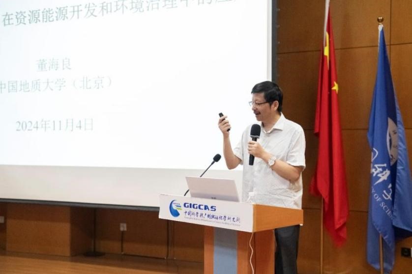 董海良教授是海外杰出青年基金获得者,长江学者特聘教授,当选美国地质学会、国际地球化学学会、欧洲地球化学学会士,担任中国矿物岩石地球化学学会第九届地表与生物地球化学专业委员会副主任委员、第九届环境矿物专业委员会副主任委员、中国空间科学学会空间生命起源与进化专委会副主任委员。他围绕矿物-微生物的相互作用,介绍了该过程在关键金属浸取、杀菌材料研制、重金属污染治理、碳封存与捕集、化石能源增产等领域的重要意义。